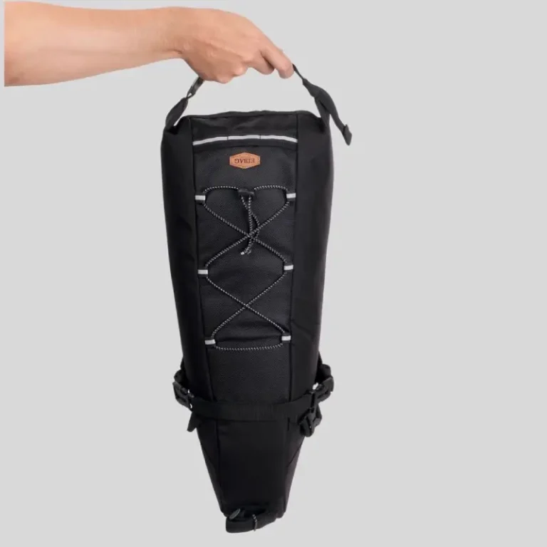 Tas Sadle Sepeda EIBAG terbaru dengan kode 1534 merupakan tas yang dipasang di bagian bawah sadel sepeda. Tas ini dirancang untuk membawa berbagai macam barang saat berkendara. Dipasang pada bagian bawah sadel sepeda dengan menggunakan 3 buah tali webbing. Bahan dalamnya terbuat dari jenis nylon berwarna hitam. Bagian alasnya dilapisi dengan bahan fiber yang keras.